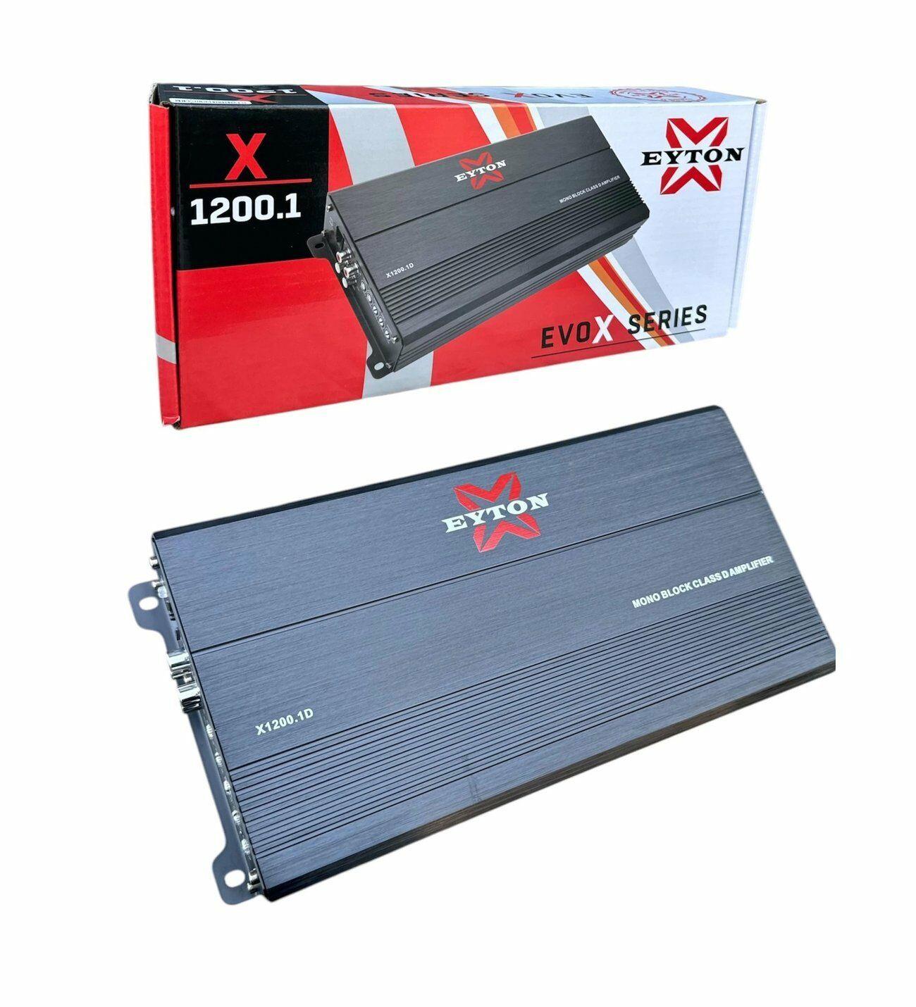 Eyton EVO X Seri 1200.1D Mono Blok D Klas Mono Amfi  RMS Gücü: 1 CH x 1200W 1 Ohm RMS Gücü: 1 CH x 800W 2 Ohm RMS Gücü: 1 CH x 600W 4 Ohm LPF: 40-180Hz Ses Altı Filtresi: 0-50Hz Frekans Tepki Aralığı: 20-180 Hz Bas güçlendirme: 0-12 dB S/G: 91 dB Uzaktan Kazanç Kontrol Cihazı ile Boyut: 297x150x50 mm