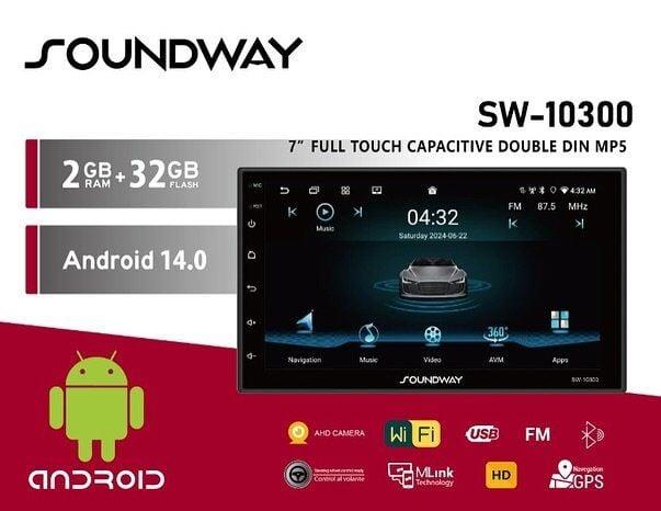 Soundway SW-10300 Android Double Teyp 2+32GB USB/BT/IPS/GPS/WiFİ/Mirror Link/Android 14.0/Geri Görüş