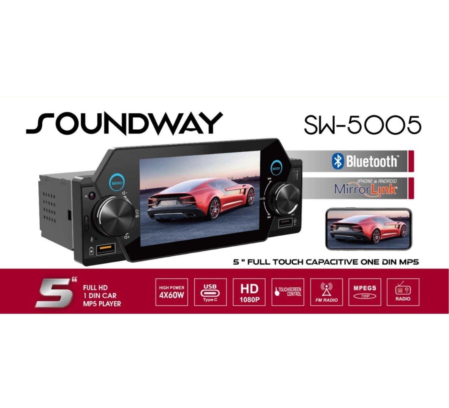 Soundway SW-5005 Oto Teyp 5 Inch Tek Din Full HD Dokunmatik Ekran MP5/BT/Mirror Link/USB/4*60W/FM